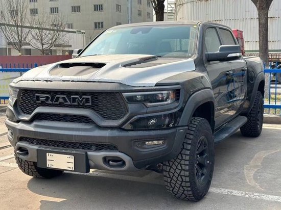 全新2023款道奇霸王龙传承了道奇Ram家族高大威猛的造型设计,同时细节部分融入了更多高性能元素,包括经过黑化处理的前格栅,引擎盖两侧的黑色进气口,以及为了容纳巨大的机械增压器而设计的通风口,前倾式车头,相较中规中矩的家族设计无疑多了几分对路面的侵袭感。车内氛围堪称豪华,绝对可以媲美高级轿车。眼神中没有透露出一丝的活泼神韵,唯一展现出来的只有凶狠。前杠是铁质前杠带拖钩,散发这金属气息,沉稳大气。