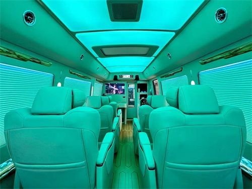 在功能方面本车配置有32寸智能液晶电视以及5.1声道美国莱福音响,不论是用来播放考察资料还是相关ppt都能够实现。除此之外,本车还搭配有音箱系统,公司团建的时候就是一间移动的K歌房,能够快速炒热气氛,急速拉员工之间的距离。