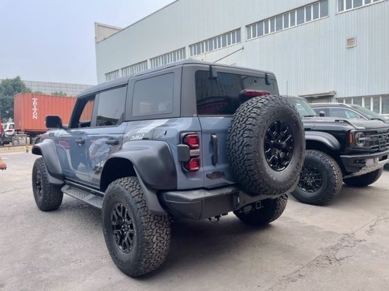 2023款福特烈马猛禽版部车的身材显然比原来普通版福特烈马bronco看起来更壮实了,因为猛禽版尺寸略有变化,更关键的是轮距扩大,宽大的感觉甚至超越牧马人。车辆底盘悬架离地间隙也抬升了,目测最小离地间隙已经可以达到350毫米以上,这就相当于原厂升高效果。