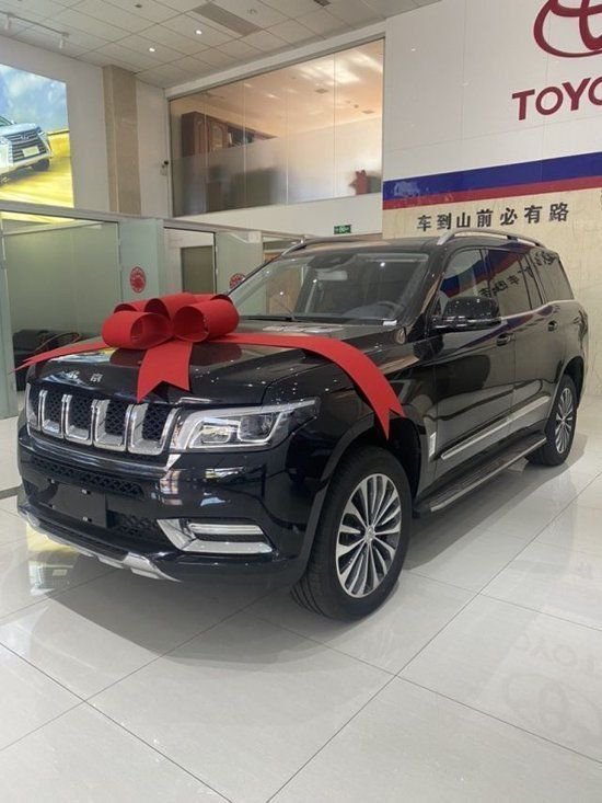 北京BJ90(配置|询价)基本延续了旧款车型的造型设计,前脸的进气格栅依旧通过宽厚的镀铬装饰填充,形成五孔造型,底层则是采用黑色的网状结构包裹。两侧平行四边形样式的大灯组与进气格栅融为一体, 灯腔内配备氙气远光灯光源,而L型LED日间行车灯则位于灯组顶部。前包围区域通过棱角分明的镀铬条装饰,呈现出三段式布局,梯形样式的下进气口内部同样采用黑色网状结构填充。