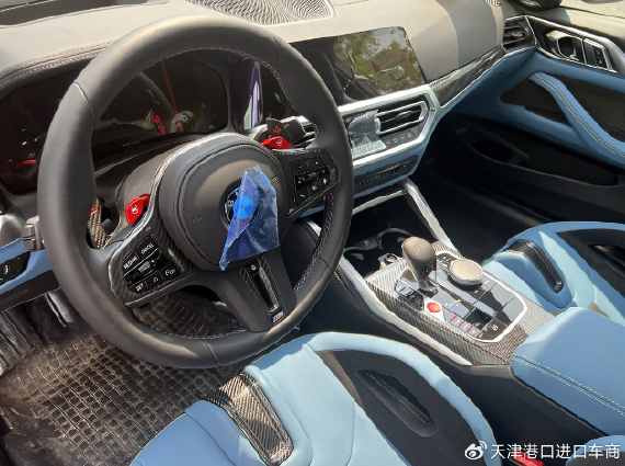 内饰方面,其选配的是银石风格内饰,12.3英寸全液晶仪表盘+10.25英寸中控屏,哈曼卡顿音响是标配,M风格的一体式运动座椅,可以选配37000元的桶形座椅,带M1M2按钮的M运动型方向盘,握感十足,红色的点火开关,颇具杀伤力,下方排挡杆还带M4雷霆版的专属标识,后排空间仍然只能当作应急。