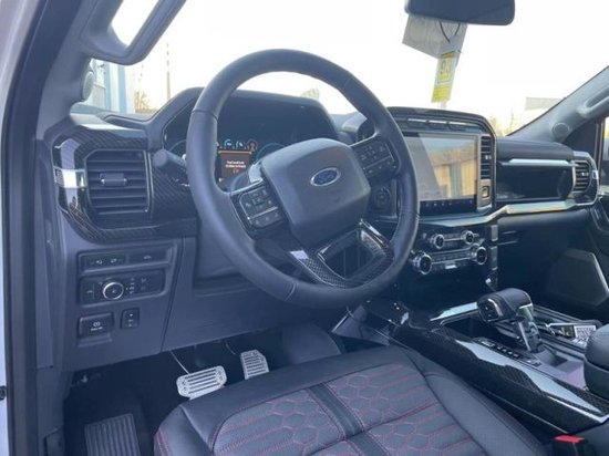 福特F150 (配置|询价)谢尔比的外形明显要狂野的多,底盘做了大幅升高,车身也加装了一系列的外观套件,整体更凶悍更有肌肉感,而且还使用了谢尔比经典的双条纹赛车拉花,车头的眼镜蛇徽标更是身份的象征,这已经达到了兰博基尼大牛的水平,除了改装机械增压,谢尔比还换了更大的中冷器、高流量节气门、高性能燃油喷射系统等,福特F150谢尔比皮卡另外加装了美国古立德全地形轮胎,更换座椅皮革,并安装升压和燃油压力表。