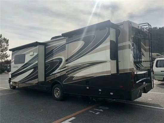 福特E450房车来自美国房车制造商Jayco房车公司,属于自行式C型房。它的外观整体造型大气浑厚,内饰奢华不已,且车厢可做电动扩展,还配备了遮阳棚,可以遮挡烈日或连绵的阴雨,让您随心所欲的与大自然亲密接触。净水箱容量118升,内设4000瓦燃油发动机,保障充分的水电供应。车内空间约24平米,宽敞舒适,丝毫无狭小压迫之感。其车长9.6米,宽2.5米,高3.5米,车身重量6.37吨,动力上搭配6.8LV10发动机,功率为422kw,油箱容积为250升。福特E450房车的前部、两侧、尾部均有外推式中空玻璃车窗,具有很好的通风性,同时还有一定的遮雨作用。