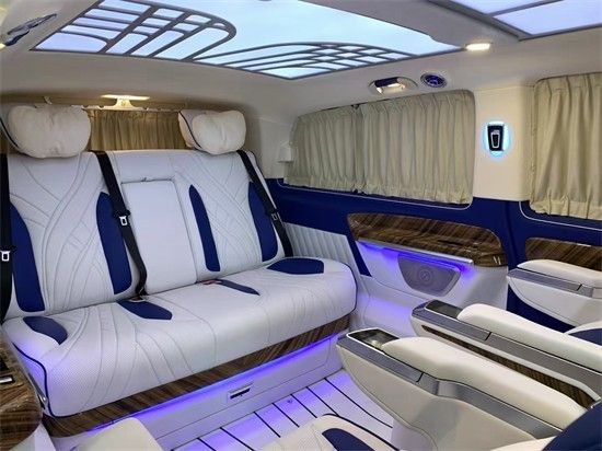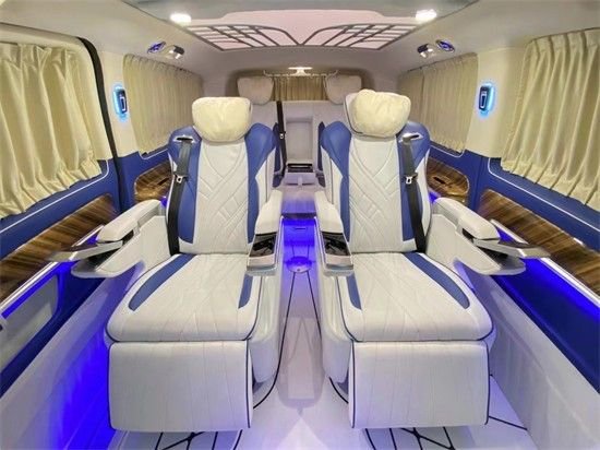 奔驰威霆改装商务车方案有很多种(大致分三种风格:1奔驰威霆改装高顶隔断七座-商务办公接待;2奔驰威霆改装平顶无隔断-私人娱乐;3奔驰威霆改装高顶半隔断商务车私人豪华房车,这三种风格又可以互相叠加、互相交错,最简单的商务风格都很多改装项目:地毯、木地板、真皮座椅、窗帘、大屏显示器、车顶/车侧蒙皮、九宫格顶灯、冰箱、办公桌、等等。智能化特点:航空座椅的调节(靠背、腰托、腿托、脚托、360°旋转、按摩、加热)由触摸屏控制,只为您的舒适和便捷。后排娱乐、办公桌、大屏显示器、放倒试沙发床,由此您可想象奔驰威霆的舒适度、便捷度和豪华程度,也给您在旅途中提供了更多乐趣。