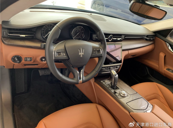 2023款玛莎拉蒂总裁GT内部空间宽敞,搭配线条流畅的仪表台、中央通道和宽大车门,共同营造非凡奢华的内部空间。中控台及仪表台各处的操作按键都显得很有质感,一个大尺寸液晶显示屏占据了大部分空间,样式简洁而考究,体现出了该有的品味。