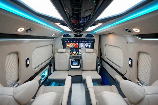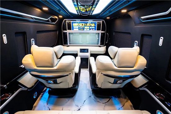 丰田海狮整车(华通丰业)升级了加强型的隔音隔热处理,车内带空气净化系统,无线充电系统。在进门侧加装了氧化铝脚踏带迎宾灯的,(华通丰业)整车都是采用纳帕级皮质进行包覆的,侧壁桃木装饰,手动百褶窗帘,后舱暖风系统,最后说说棚顶灯光,这个有智能触摸控制系统。灯光超级棒。丰田海狮车内座椅面料考究,前后座椅间适度,座椅靠背角度可灵活调节阔约的头部和腿部空间让乘坐自在舒适。同时,为了满足高端商务接待能力,丰田海狮推出了不同配置选装包,车内内饰的升级为乘客带来奢华舒适的出行享受。