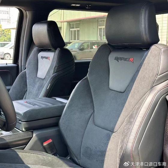 23款新款福特猛禽R,内饰部分,新车内部跟普通猛禽一样,唯一变动的地方是用料,猛禽R使用Alcantara面料,质感更好,为了提升辨识度,座椅、中控均加入了R字母标识,彰显其独特的性能版的身份。