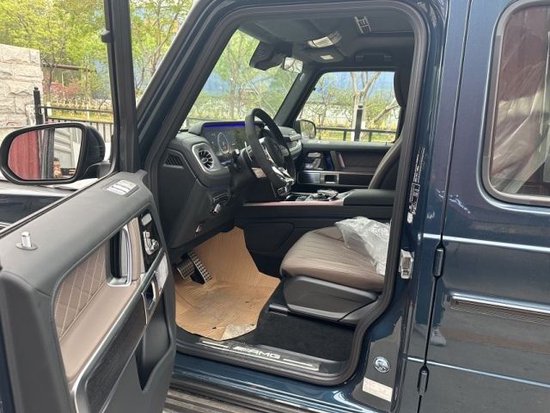 G63内饰方面,新G63保留了新G500的整体设计,除配色差异外,新车还换装了全新造型的平底式运动方向盘,其两侧配以打孔皮质包裹,下部镀铬装饰的造型也与新G 500明显不同,看上去十分战斗。此外,全液晶仪表盘+中控大屏的双12.3英寸屏幕设计在新车上也没有缺席,营造出了浓郁的科技感。