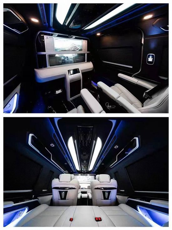 虽然有隔断墙,但是对于海狮的车身尺寸来讲,在后面做的一个5座的布局,对于空间的应用显得非常的充分。其次,这款车型在整个色彩的搭配以及车内造型的设计与布局方面都显得独具一格。商务车基本的两个航空座椅,外加一个沙发床,这属于必备品了,航空座椅带有通风,旋转,按摩,加热腿托的所有功能,而且做了深度的包覆,乘坐体验感绝佳,第三排的沙发床既可以当成两个独立的座椅使用,在必要的时候,完全可以180度放平,日常的休息区域就此形成。