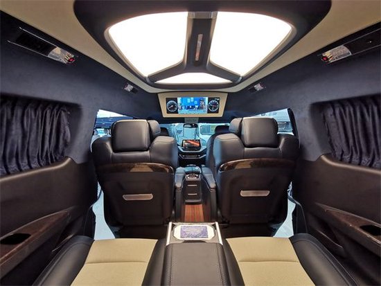 这款车型的售价是3X.8万,跟其他的MPV一样属于一个7座的双布局TeL:130-6179-2035,2+2+3的动态,同样,跟市面上的多数改装车一样,他也是做了一个全面的空间改装,整车包覆,进口的柚木地板,半隔断的电视机连接无线,驾驶舱的中控扶手冰箱,顶部,座椅……分区块来看,每一个都值得拿出来说一说。