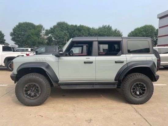 Bronco 烈马 23款 3.0T 四门 Raptor猛禽 配置:模块化前杠带RIG雾灯,金属后杠,挡泥板挂紧钩,灰/黑拼色进气格栅,全底盘金属护板,前大灯自动远光LED,带标志LED大灯,电动折叠后视镜,加强旋启式后门,可拆卸防石击护杠,脚踏板,拖车钩前2后2。一键升降车窗,60/40折叠式后排座椅,带预接线的辅助开关,手套箱,LTHR档位旋钮,MOLLE皮带系统,12v电源插座,运动真皮方向盘,拨片换挡,12寸LCD触屏,360度环车影像,FORDPASS-连接4G热点远程信息处理器,前后门锁同时开启关闭,坡道缓降辅助,HOSS 4.0 悬架,FOX可调阻尼减震,预碰撞辅助系统,猛禽工具箱,天狼星系统,G.O.A.T模式,37X12.5R17 A/T百路驰全地形胎,多片式可拆卸硬顶及消音顶棚,前排顶板储存袋,铺装式脚垫,无钥匙进入。豪华套装(374A选装配置,包含所有373A已有内容):自适应巡航,回避转向辅助,10扬声器B.O音响含低音炮,加热方向盘,无线充电板,智能充电USB接口,通用车库门遥控。选装: 电动麂皮座椅、猛禽贴纸、防脱圈。(购车热线:15102223918)微信同步。