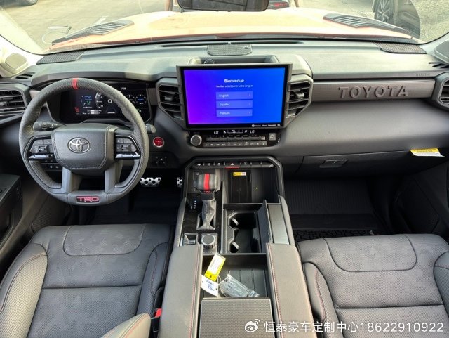 23款丰田红杉车内采用了大量软质材料包裹,部分区域还加入了缝线处理,显得档次感和质感十足。另外车内采用的是四辐式多功能方向盘,并保留了很多物理按键,足以满足驾驶时想要的操控感,车内的科技氛围是通过12.3英寸的全液晶仪表盘和14英寸的中控屏来实现的,中控屏两侧的空调出风口,虽然没有采用时下流行的贯通式设计,但在中控台上对称排列也别有一番风味。