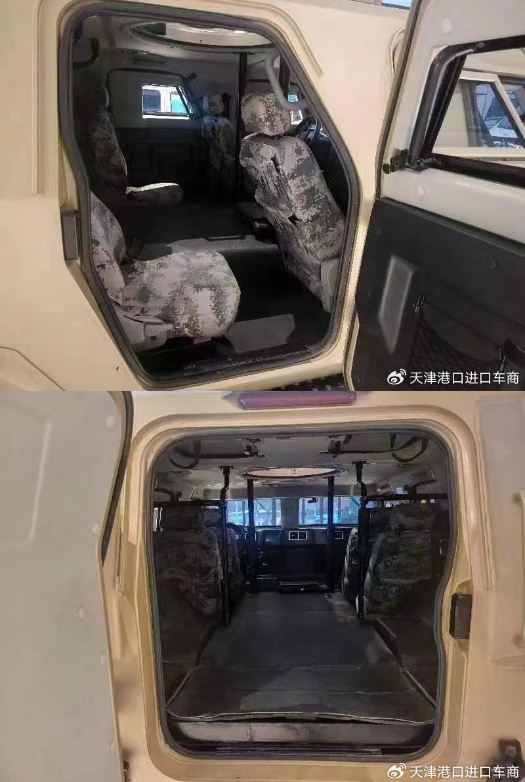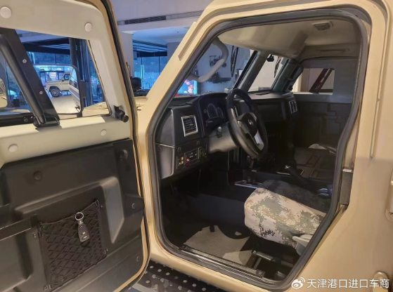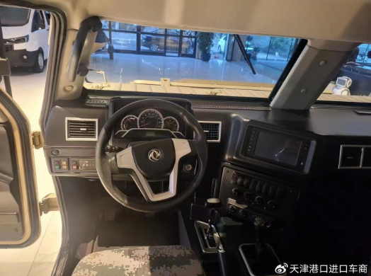 和之前的车型不同,新款的东风猛士车内看上去较为豪华,配备了真皮座椅,真皮方向盘,还有一些多功能娱乐系统。主驾驶的操作台非常简单,驾驶员的左右手侧分别有两个集中的操作面板。面板上可以操作空调,主副油箱的切换,轮胎充气和放气。不过可以看到,副驾驶和主驾驶之间的隔断比较大,这样可以防止过多的交流,提高行车安全系数。