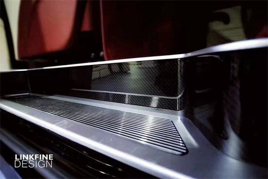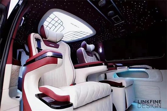 内饰通过改装实现了满足商务接待、洽谈、出游等各种出行需求。后舱必定是绚丽铺陈的舒适化与娱乐功能性体现;一款贴合高端商务出行的豪华商务,基于此项定位。