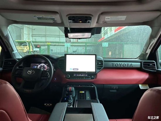 23款丰田红杉车内采用了大量软质材料包裹,部分区域还加入了缝线处理,显得档次感和质感十足。另外车内采用的是四辐式多功能方向盘,并保留了很多物理按键,足以满足驾驶时想要的操控感,车内的科技氛围是通过12.3英寸的全液晶仪表盘和14英寸的中控屏来实现的,中控屏两侧的空调出风口,虽然没有采用时下流行的贯通式设计,但在中控台上对称排列也别有一番风味。另外顶配Capstone车型的内饰将会采用更加豪华的黑白配色方案,并搭配胡桃木装饰面板。