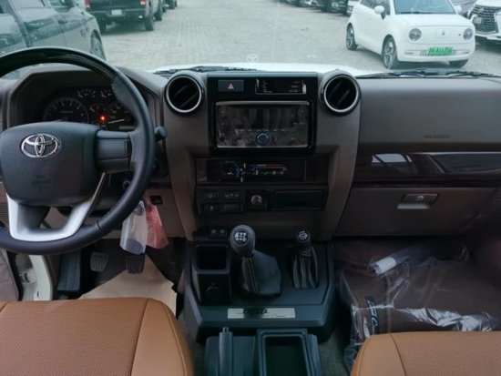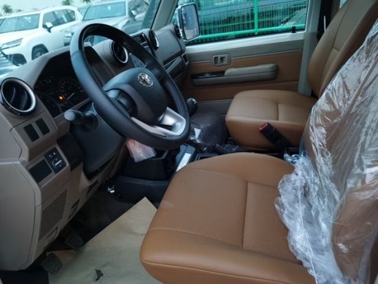 23款丰田LC76 汽油4.0 白/棕、沙漠黄/棕 车架号多台 国6 5速手动变速箱 130升油箱 分时四驱 前差速器 后差速锁 16英寸合金车265/70R16 刹车:前盘后鼓 前悬螺旋弹簧 后悬板式弹簧 ABS+VSC+BA+EBD+HAC+ATRC 2气囊 彩色保险杠,黄车黑杠)高位刹车灯 、镀铬外后视镜带电动调节 、侧踏板 、数字时钟 5座 、空调 、熏黑大灯、熏黑轮毂、电动门锁 、电动车窗 、收音机 CD 、蓝牙 、2个扬声器 、胎压监测 、USB快速充电 、前雾灯 、后雾灯 、手套箱带钥匙 、日行灯、徽章、脚垫、黑色轮眉、散热格栅、彩条、桃木方向盘、桃木档把、桃木内饰、真皮座椅