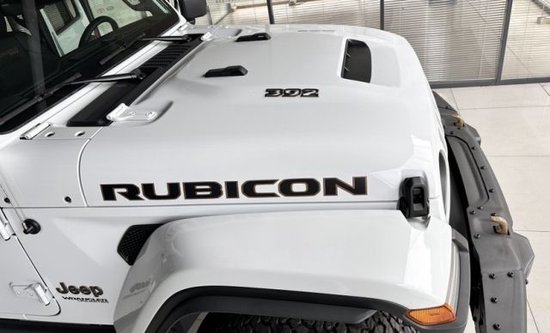 2023款牧马人392除此之外,为了应对V8发动机更大的进气和散热需求,该车发动机舱盖具有隆起式设计,并在撞风面增加进气口。同时,这款车发动机舱盖除Rubicon标识外,还新增392数字体现其特别身份。