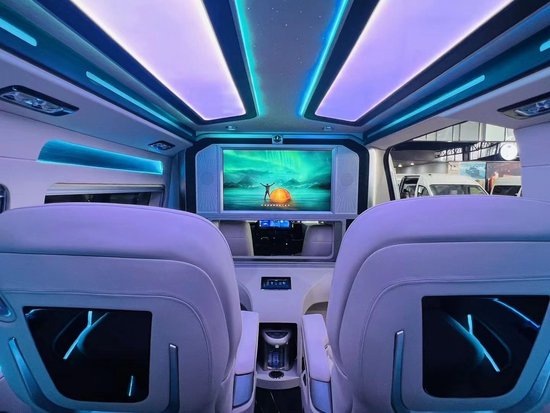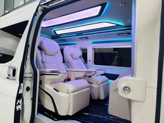 丰田海狮商务车改装房车空间很足够,毫无短促感,真皮包覆的车舱,丰田海狮商务车改装超大屏导航,显得很上档次。前置精巧吧台,奢华桃木装饰。下方两个独立的电动隐藏式真皮座椅,吧台上方是升降液晶电视,及BOSE音响。座椅悉数选用纳帕真皮制作,丰田海狮商务车改装房车作工精巧,合缝处理紧密,展现德国造车的谨慎和高标准要求。座椅还配备了电动按摩加热通风系统。后排座椅侧还有电动隐藏式作业桌板,丰田海狮商务车改装房车商务作业很便利。