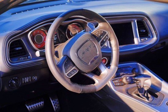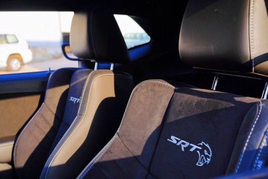道奇地狱猫SRT采用了道奇家族最新设计理念,整体造型更加运动,仪表盘采用双仪表盘加液晶显示屏的组合设计,中控台采用分体式,并配有中央液晶显示屏。拥有运动化的氛围,包括底式方向盘、运动座椅、仿碳纤维内饰部件及铝合金装饰面板。