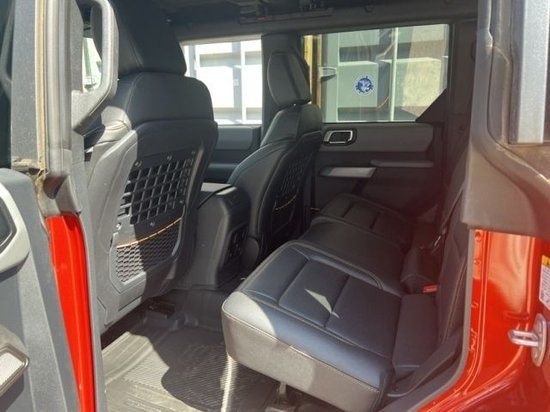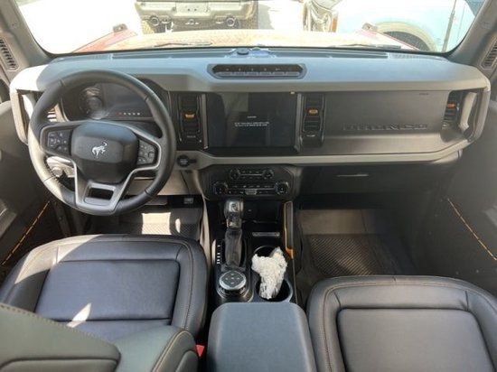 23款福特烈马Bronco车内采用硬朗的设计风格,中控台设计主次分明且有层次感,用料也厚实,多功能方向盘造型运动,中控屏幕采用内嵌式的设计增添了车内的时尚感,按键布局合理,档把设计精致,座椅宽大厚实,空间宽敞,实用性强。
