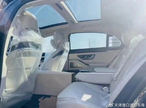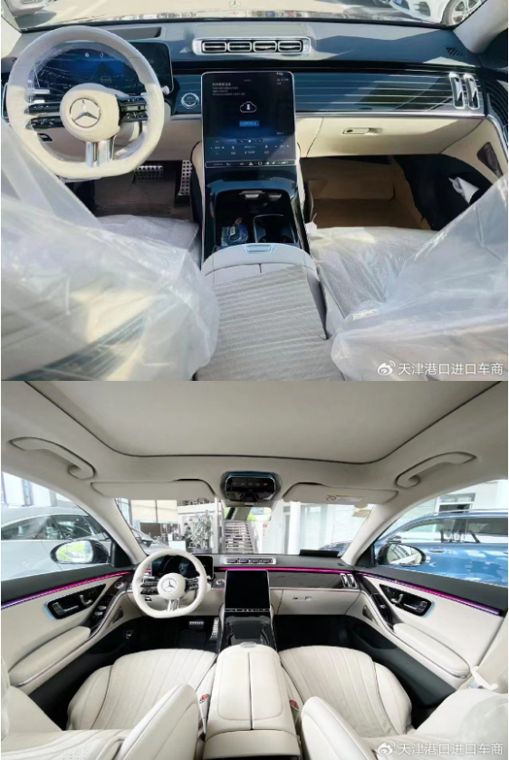 奔驰S450四驱内饰方面,12.3英寸全液晶仪表盘,12.8英寸OLED曲面中控屏,15个喇叭的柏林音响,前后排座椅,方向盘都是真皮材质,前后排座椅带加热,通风功能,随车标配64色环境氛围灯,前后排手机无线充电,HUD抬头显示,后排两块液晶屏需要35800元。
