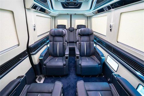 商务房车内饰风格上选择了凸显商务底蕴的深色系,沉稳内敛的黑色搭配富于神秘色彩的浪漫紫,加上环绕车身的装饰灯,七彩星空顶灯更将车内氛围烘托到极致,在川流不息的人群中远远望见一眼,绝对有引人驻足品味的冲动。