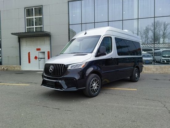 2023款奔驰斯宾特,作为一款基于奔驰斯宾特(进口)Sprinter打造的新车型,延续高大的整体造型,并采用全黑色车身涂装,匹配一款镀铬处理多辐铝合金轮辋和金属车身装饰,外观精致感有所提升。两侧带有LED日间行车灯。匹配锻造轮毂,细节效果与内饰格调相呼应,轮毂尺寸为18英寸。