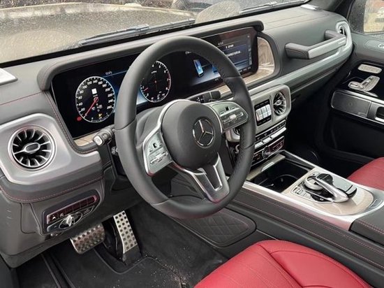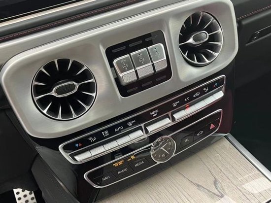23款平行进口G550经典中奔驰G550采用了桃木覆盖件加 以修饰,真皮座椅和中控台材料质成与外观呈现两个风格。内饰核心的仪表台整体上也保持了规矩大方的造型风格,与简洁刚毅的外观相统一。走进车内让人不禁忘记这是一辆外表强悍的SUV。原装新款奔驰G550多功能的方向盘设计、全新的中控台造型,以及带有320公里/小时记速器的仪表盘等等。