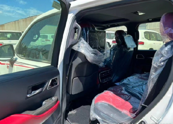 配置:白/红黑双拼 天窗、抬显、后娱、雷测、JBL、遥控启动、蠕行、坦克调头、六种驾驶模式、MTS多地形模式、车道保持+转向震动、KDSS悬挂系统、车辆动态管理、360环影带清洗、前4后4电眼、倒影、三把差速锁、预碰撞系统、盲点检测、刹车辅助、GR一键启动、GR18越野轮、10气囊、冰箱、真皮运动豪华座椅、前后排通风加热座椅、前排电动座椅、电动座椅垂直调节、第三排电动座椅、四区空调、无钥匙进入、电尾门、GR桃木真皮方向盘、自动远光灯、大灯清洗、GR智能钥匙、GR头枕、桃木内饰、7寸仪表盘、12.3寸大屏、GR中央显示屏、GR蜂窝状中网、GR前后保险杠、GR丰田logo、GR侧面条纹、GR侧踏板、GR前丰田徽章、黑色行李架、黑色门把手、黑色后视镜、黑色轮眉、底挂备胎、拖车钩、无线充电