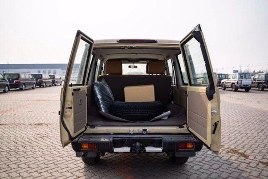 23款 中东版丰田LC76 配置:绞盘、涉水喉、桃木内饰、桃木方向盘、棕色真皮座椅! 最高配置:汽油4.0 1⃣️白/棕 5速手动变速箱 、130升油箱、 分时四驱、前差速器锁、后差速锁、 16英寸越野铝合金轮毂265/70R16、 刹车配备:前盘。后鼓、前悬螺旋弹簧、后悬板式弹簧 、 越野性能:ABS+VSC+BA+EBD+HAC+ATRC、 2气囊、彩色保险杠、白车/黑杠、 高位刹车灯 、镀铬外后视镜。带电动调节 、侧踏板 、数字时钟、五座 、半自动空调 、 熏黑大灯、电动门锁 、电动车窗 、 收音机 CD 、蓝牙 、双扬声器 、胎压监测 、 USB快速充电 、前雾灯 、后雾灯 、手套箱锁带钥匙 、日行灯、徽章、脚垫、黑色轮眉、散热格栅、原车新款彩条