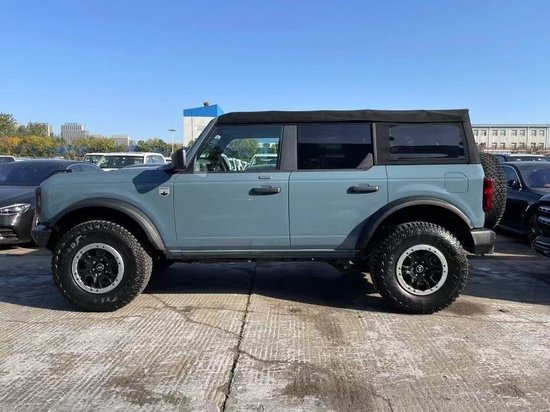 配置:中级包,大脚包,软顶可拆卸,前部重型性能模块化钢制保险杠,发动机前钢制护板,AUX头顶辅助开关预留,密码锁,后备箱垫,全气候橡胶脚垫,牌照架。 中级包(双门智能门锁,两区空调,脚部氛围灯,内后视镜自动防眩目,加热前排座椅,主副驾遮阳板化妆镜带照明,交流电插座,遥控启动,后雷达,SYNC4增强语音识别,福特Co-Pilot36O™M技术(盲点监测,车道保持,自动远光灯,倒车影像带辅助线,碰撞预警紧急制动系统AEB)) 大脚野人包是福特烈马的灵魂所在,带大脚包的福特烈马带来的提升是非常巨大的,前后两把差速锁,4A模式,17寸防脱圈轮毂,315的固特异轮胎35英寸,从HOSS 1.0悬挂变成了HOSS 2.0悬挂,整体原厂升高,轮眉加宽,倍斯登减震,4.7的后轴最终传送比(烈马最大速比,低速扭矩增大,越野能力加强)。23款福特烈马Bronco 采用了趋于平直的车顶线条,从而获得更好的车内头部空间,同时,贯穿式腰线的使用,也让新车看上去更具层次感,另外,前后侧翼子板微微突出车身,搭配车门下方内凹式的设计,再加上大尺寸轮毂,看上去四平八稳。车尾部分,新车配备了外挂式后备胎,两侧尾灯采用竖状的设计,点亮后效果十分出色,黑色外凸的后保险杠设计很有越野范。