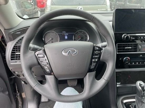 新款英菲尼迪QX80内饰布局也与现款车型基本一致,但中央12.3英寸的悬浮式中控屏取代了现款车型上的小屏幕,同时还支持Apple CarPlay和Android Auto手机互联,以及手机无线充电,自动空调、InTouch服务等功能。同时,车内第二排可选装双人独立座椅,第三排座椅则是标准配置。