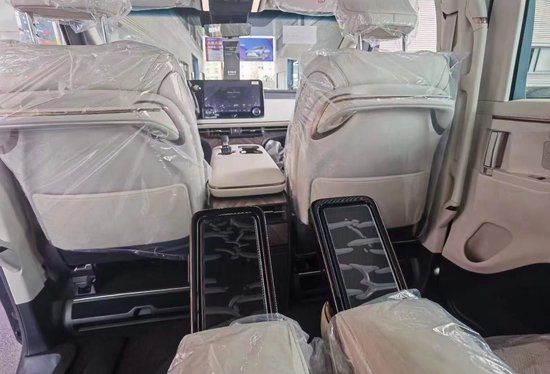 轮胎:19寸 前后排都是双层玻璃 LED转向辅助灯 64色氛围灯 方向盘加热 左右独立天窗 流媒体后视镜 前排和第三排半苯胺真皮座椅 第二排奢鞣苯胺高级真皮带低弹性聚氨酯填充销售经理:张女士 18502224231 微信同步 前排加热通风 后排加热通风按摩 前排智能电控门+电吸门 智能钥匙+数字钥匙+卡片钥匙 第二排掌上无线控制板[两个手机] 后排礼宾私享助理