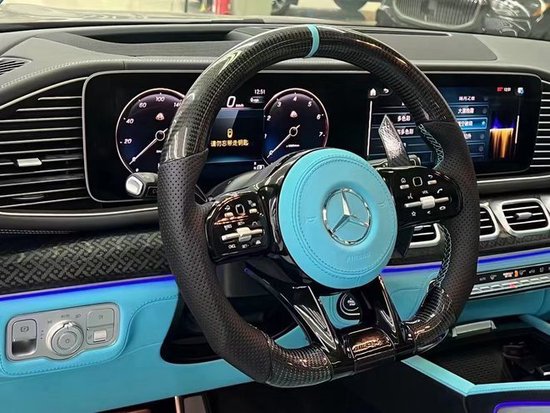 迈莎锐版奔驰GLS450环抱式中控台将运动与豪华做了很好的兼顾,中控台采用高档软质材料包裹,同时还有缝线工艺,以及大面积木纹饰板加以点缀。三幅式平底方向盘动感十足,头顶一个全景天窗提供车内采光,带来舒适的驾驶体验。