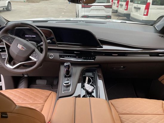 新款凯雷德的内部布局经过精心打造注重细节,以奢华面料、一系列的高科技创新奠定了基调。内饰的豪华程度可以与豪华轿车相媲美,最顶级的材质提供细腻触觉和精致观感。真皮桃木多功能方向盘可加热,三区域独立可调节空调可由三排乘客分别控制温度。仪表盘以业界首创的曲面OLED驾驶显示屏为主,它由三个弯曲的 OLED 显示屏组成,这些显示屏相互叠加,形成一个 38 英寸的酷炫组合数字空间,其中一些用作驾驶员的仪表盘,而其余的则投射 CUE 信息娱乐系统,科技感十足。
