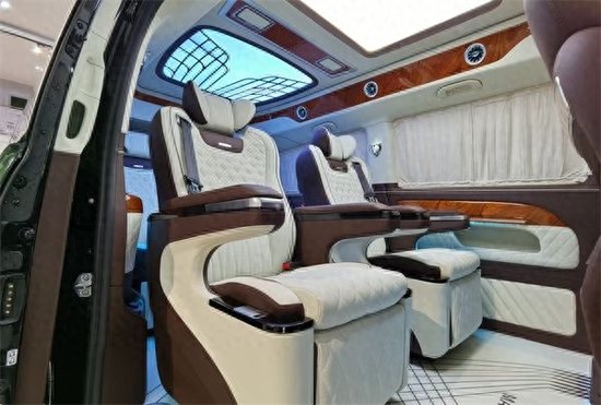 在车内都做了隔音处理,增加了软皮纤维包覆,窗布、水晶地板、插座、踏板等,非常便利。同时这台高顶的还增加音响,环绕音道,低音炮。声觉感受超级赞。车舱玻璃均选用防紫外线隔热玻璃,夏天即使不开空调,也不会感到炎热。