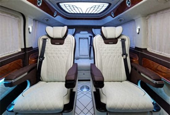 顶棚与车身的连接处采用桃木,在智能可控性氛围灯光下显得格外魅惑,前面的仿天窗顶灯,明亮而不刺眼,光度自行调节。后面天使之翼的吊顶灯,三种不同的颜色随心情切换,给人一种一车一世界的感觉。