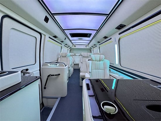 丰田考斯特改装内饰的设计上注重的是实用性和舒适性的完美结合。座椅的设计上也是十分的贴心,真皮航空座椅以及舒适的可旋转老板椅,或者是原装进口的埃尔法座椅,华通丰业丰田考斯特内饰的设计既能满足我们的需要也可以展示出内饰的高贵感。而丰田考斯特同时设计了豪华的办公桌,我们的办公活动提供方便。