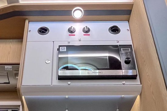全新E途pro max厨房区比较紧凑,厨台上配备了定制带盖水槽+鹅颈水龙头,标配的是移动电磁炉,只在需要时使用,不作为固定嵌入式设计。车内车外共用双向抽屉,右侧还有部分储物空间。厨房顶部依然是行车空调的出风口,同时还配备了微波炉等厨房设备。厨房操作台相应设计了延伸桌板,桌板为隐藏设计,像抽屉一样可以随用随时抽出。152升赛特福德房车专用冰箱自然是标准配置,车内采用了三菱的1.5匹变频空调,省电的同时制冷制热性能都更好。 新E途车内除了大屏操作和app远程控制之外,车内的控制单元也换成了全新的薄膜按键,还可以自定义车内的灯光控制。