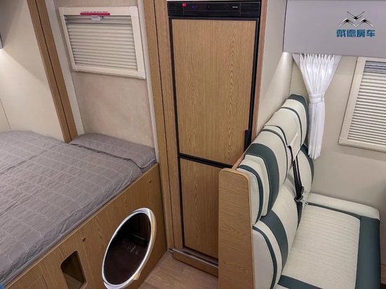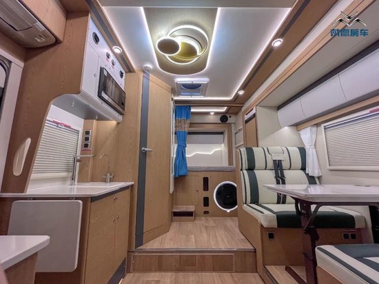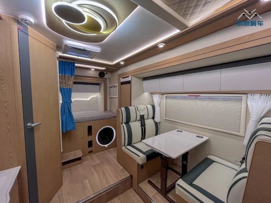 这款车在外观上进行了优化和升级,采用“龙”式小额头设计弱化了大额头的笨拙感,更重要的是提升了内部17%使用空间,整车的的细节方面采用开模工艺,相比旧款,模块化的地方增加了。车身技术层面,选用的是5公分厚度断桥保温墙体,整车箱体实现热断桥设计,额头区域为双层PVC包覆,保温性能更好。