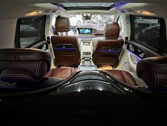 贯穿式中控台液晶屏在迈巴赫GLS身上为标配,不过新车的MBUX车载系统为迈巴赫GLS定制了专属开启画面以及UI画面,并且与后排乘客独立娱乐系统联动,乘客也可根据自己的需求来调整界面,另外新车还集成了Mercedes me系统,可远程控制车辆