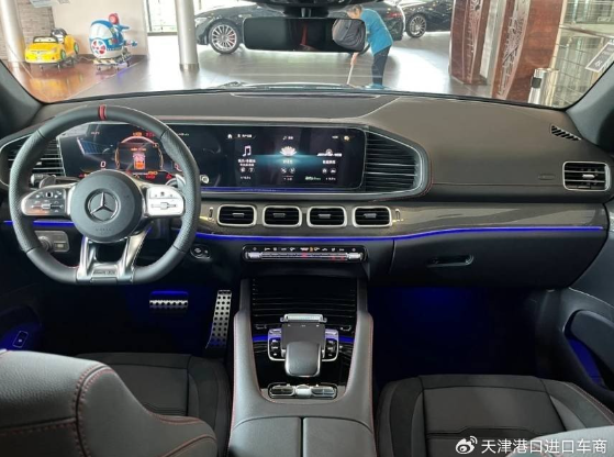 全新奔驰GLE53Coupe的整体设计层面当然不会有明显的变化,双连大尺寸悬浮液晶屏,贯穿式的特殊质感面板装饰,长方形的空调出风口等细节都不会缺席,在此基础上,毕竟是一款AMG车型,新车采用了带有AMG标志,换挡拨片,三九点钟翻毛皮材质的平底方向盘,加上随处可见的翻毛皮和打孔真皮穿插的门板和座椅装饰等细节,以及纯黑的内饰配色,显示出更强的战斗感。