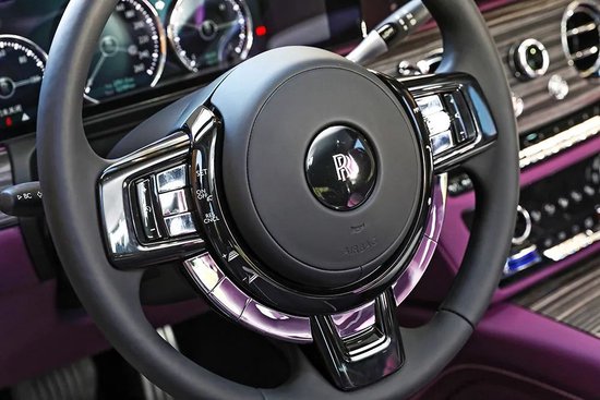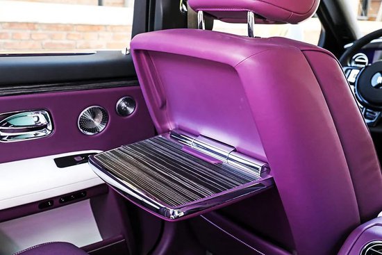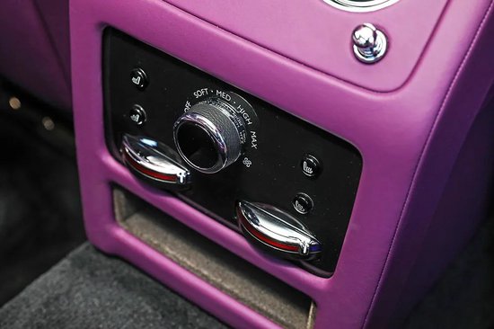 对开式车门仍然是劳斯莱斯经典的保留项目,当我轻触门把手后车门缓缓打开,看到内室一瞬间我嘲笑自己的无知,紫色为主体点缀白色的配色不再只停留于“奢华”这种修饰词层面上,用“格调”一词或许能真正展现劳斯莱斯专属的高级定制身份。要知道,白车身搭配紫色内室意味着要付出更高的成本和工艺,更不是所有豪华车型都能驾驭这种张扬的配色。慢着,你以为全新古思特的“格调”就此结束了吗?远没有。整个车内由20组338块皮革包裹的内室只是格调的起步,全新车型首次将152支LED灯源植入副驾驶的面板内部,营造出850多颗星星环绕的明暗层次效果。针对后排乘坐体验,新车同样加入了劳斯莱斯特有的星空车顶,并带有流星效果,配合厚实的真皮座椅,即便不开启按摩选项也能享受安睡其中。