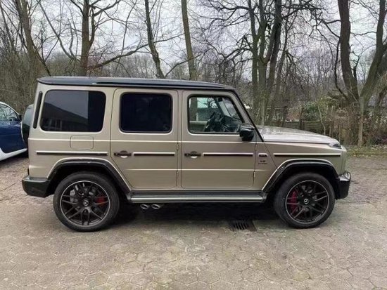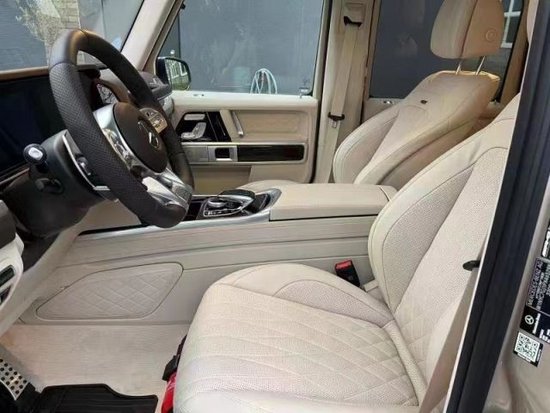 23款奔驰G63 (配置|询价)硬朗的方盒子造型,没有多余的弧度、没有任何曲线,眼光所及满是平直锋利的线条,就连车顶上的导雨沟槽,也是沿着车顶周围一圈,分外焊接上去的金属槽,车门搭钮更是绝不虚心,硬挺挺地屹立在门缝之外,外凸的轮拱、造型如同梯形的引擎盖。
