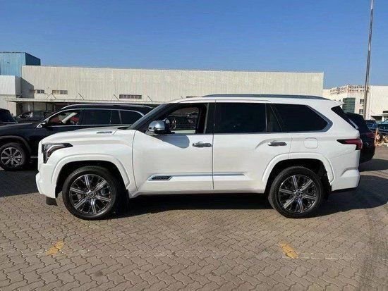 23款丰田红杉侧面上看,设计师还为这款SUV涂黑了A柱和肌肉发达的挡泥板,车轮开口上方有一个突出的脊,D柱的底部向前倾斜。
