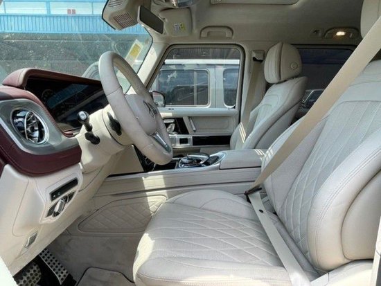 奔驰G400D时光铭刻版内饰采用深色的设计,布局设计也是熟悉的风格,在副驾驶的扶手上带有“STRONGER THAN TIME”的标志,再一次展现它特殊的身份,配置上,多功能方向盘、双12.3寸液晶大屏、柏林之声音响、小鼠标、三把差速锁和天窗等其他高端配置功能依旧可见,奢华程度丝毫不减。