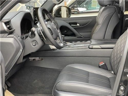 2022款雷克萨斯LX600座椅布局方面,新车的前排座椅倾斜角度可以调节至 48度。而后排座椅显示屏可以向下折叠以提供前方视野,其最大腿部空间为 1,100 毫米/43 英寸。同时,新车的后排座椅还采用 Ultra Luxury 独有的弧形头枕、座椅靠背和靠垫,可以地对头部、臀部和下半身进行包裹。