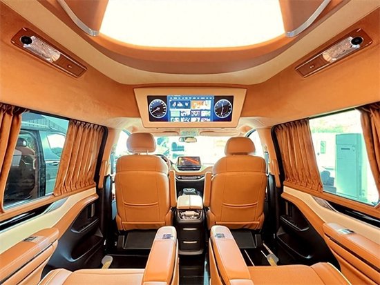 车内采用麂皮绒的软包加上星盾天幕顶灯,整车在看不到的地方,比如四周全部做了隔音的处理,窗户上都加装的是高级私密窗帘,既可以避免阳光的直接照射,维护车内的一个用车环境,也可以很好的保护我们车主的隐私。
