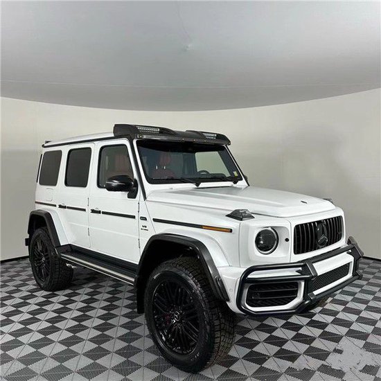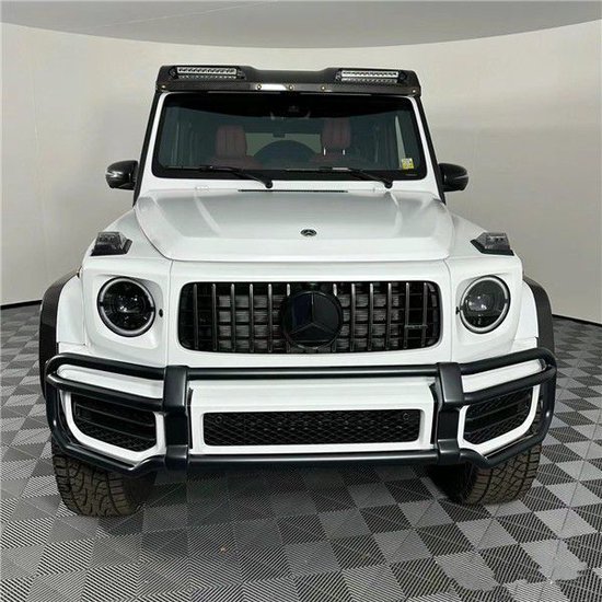 23款奔驰G63 (配置|询价) 4X4加宽了轮眉,新增加了车顶行李架,并还设置了专门的梯子可以方便拿取行李,尾部备胎也看上去更大,整个新车离地间隙变得更高,尾部还新增了一个辅助保险杠。肉眼可见的越野性能全面提升。作为全新一代的升级,新车拥有G 63车型的包围和AMG专属的Green Hell Magno车漆,展现出强大的性能。
