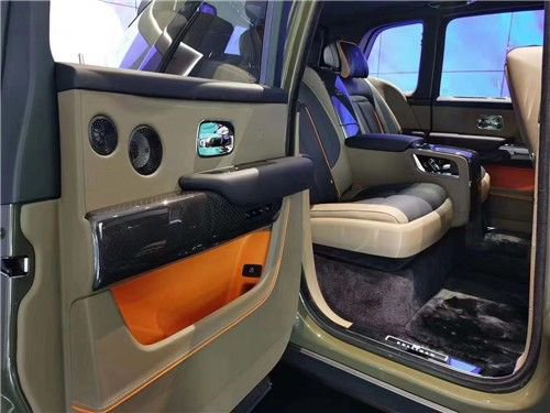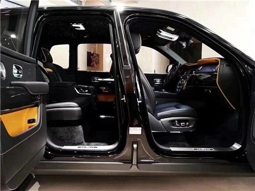 劳斯莱斯库里南BB限量版简洁而现代的马蹄铁图案,强调座椅的支撑力。座椅间固定的中央扶手台设有存放定制香槟酒具的酒柜和冷藏箱,电子控制的座椅角度,并带有按摩功能及座椅扶手加热功能。腿部支撑可电动伸展90°,为后排乘客带来极致舒适的体验。劳斯莱斯库里南延续了劳斯莱斯标志性的对开式车门设计,两扇车门均可开启近乎90度,以便车内成员方便上下车配合大尺寸的天窗让车内乘客感觉更加舒适。